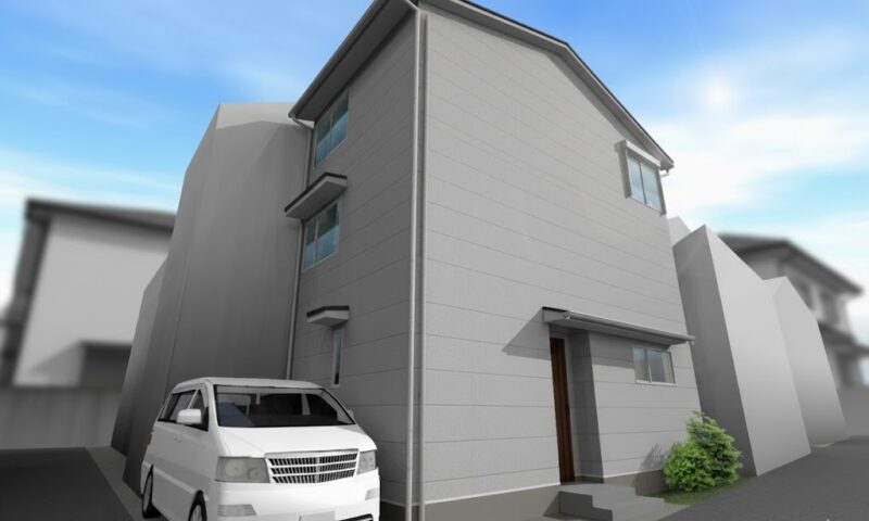 敷地面積が約35坪、延床面積25.8坪の3人家族が暮らす家。 白の外壁とアクセント木壁が映える明るい邸宅です。