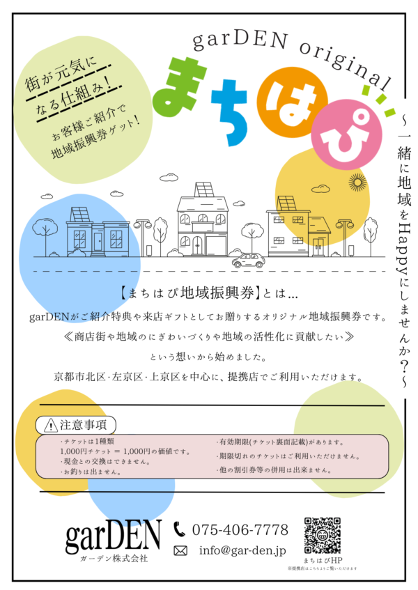 来店ギフトとしてお渡ししている「ガーデンオリジナルの地域振興券」です。