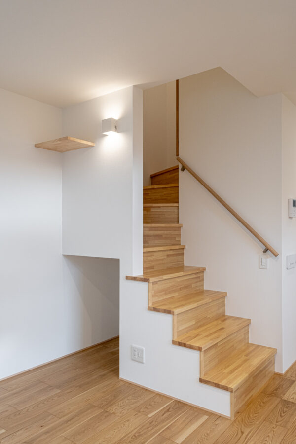 階段横の壁を開放的にするだけでも空間の印象は随分と変わるものですね。
