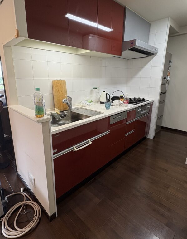 ちなみに、、艶っと赤いキッチンもダイノックシート貼りで、