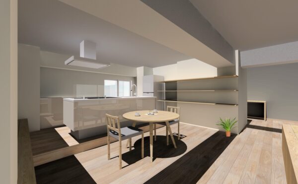 今日はこちらのCGにも写っている、キッチンの搬入作業をしています。