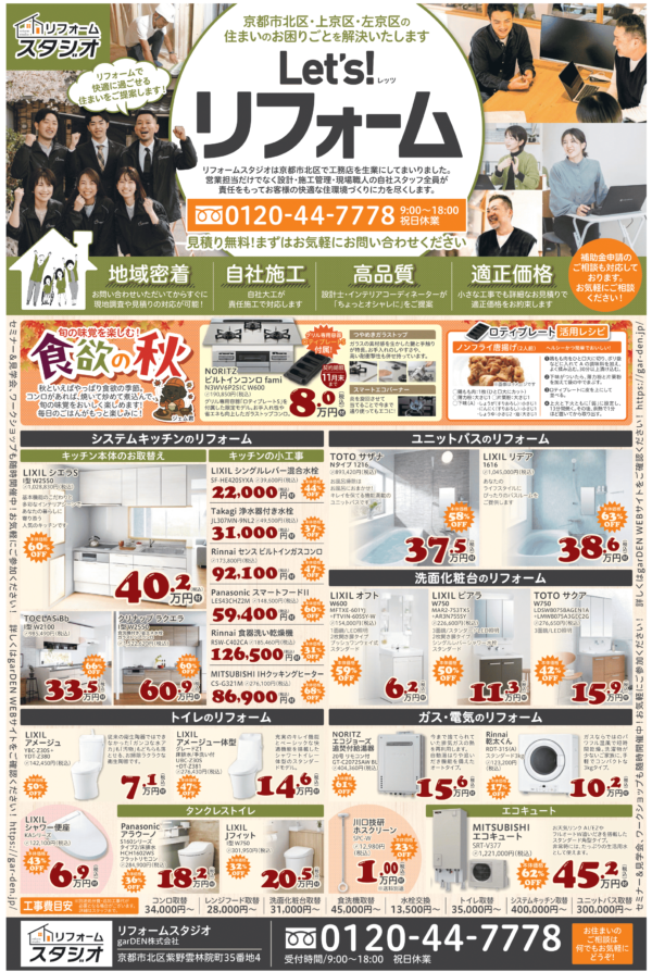 食欲の秋、安心・快適なキッチンで毎日の暮らしをもっと豊かに!!