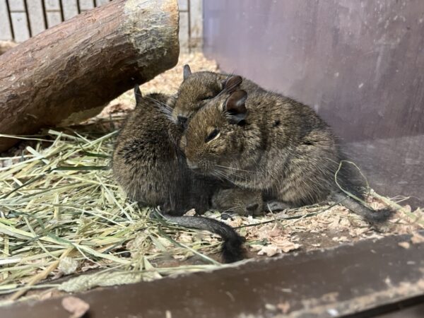 小動物のエリアでデグーが固まって眠っているのを発見。