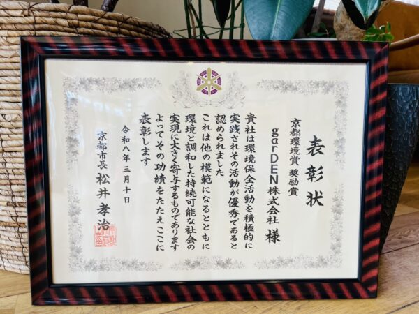 この度、令和7年度(第23回)京都環境賞において、gaarDEN株式会社が「奨励賞」を受賞いたしました!