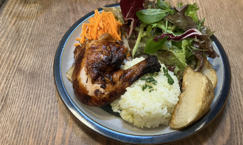 実は私、カフェの新開拓が好きなのですが、 先日ふらっと入ったカフェがとても素敵でした。 ↓↓↓ 丁度入店したタイミングで「ロティサリーチキン焼き立てですよ~」と店員さん。 なんと…