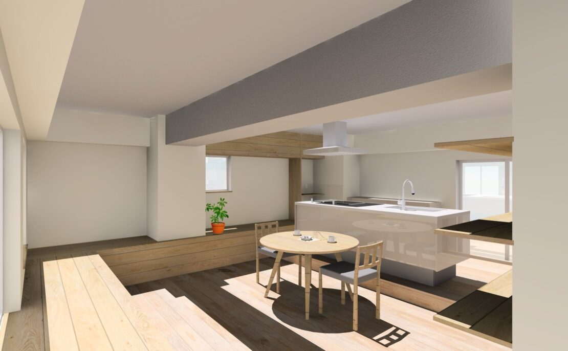 【マンションリノベ完成見学会】小さな居場所と大きなベンチの家<京都市中京区>